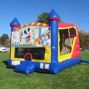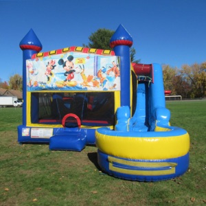 You will find an assortment of Combo Bouncers for your next entertaining event that will please all ages and a variety of tastes from themed combos for tots to safe jumping fun for bigger kids. The assortment of fun includes sliding, jumping, playing basketball and climbing on multiple surfaces for hours of entertainment that never gets boring. The themes have all the favorite characters children are attracted to like Superman, Robo Cars, Batman, Dora, Mickey & Minnie and Finding Nemo. SpongeBob, Strawberry Shortcake and Ninja Turtles can put in an appearance at your next party too. No matter what your favorite activity is there is nothing like the variety and excitement of colorful bouncy material for hours of fun and laughter.